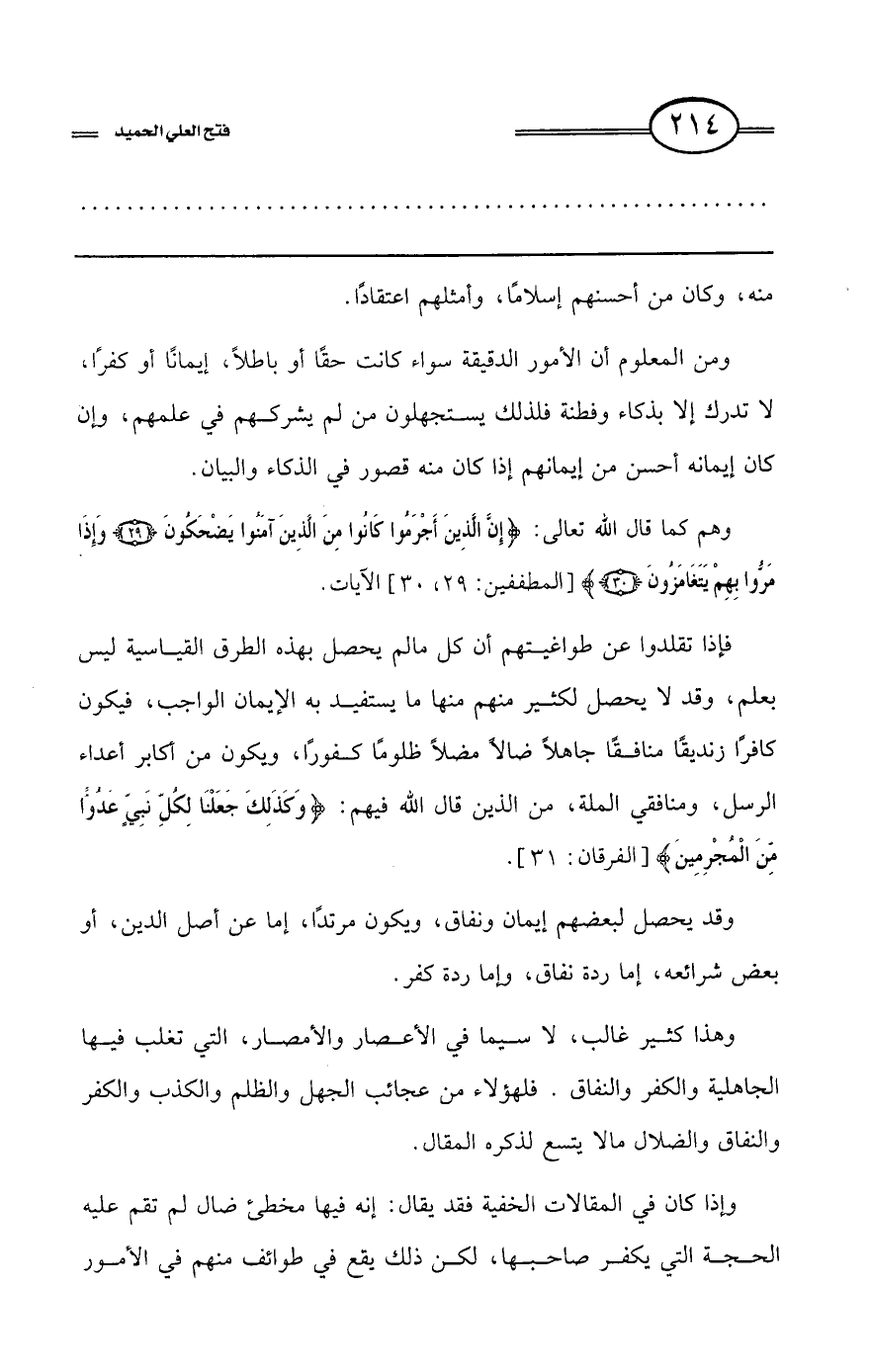 كتاب فتح العلي الحميد في شرح كتاب مفيد المستفيد في كفر تارك التوحيد