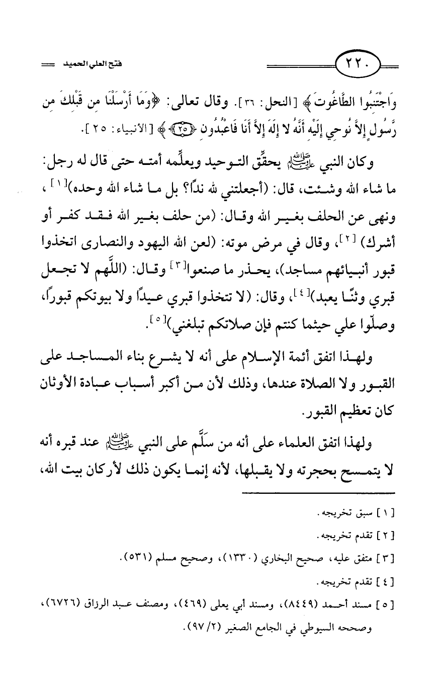 كتاب فتح العلي الحميد في شرح كتاب مفيد المستفيد في كفر تارك التوحيد