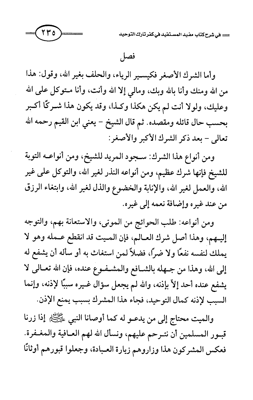 كتاب فتح العلي الحميد في شرح كتاب مفيد المستفيد في كفر تارك التوحيد