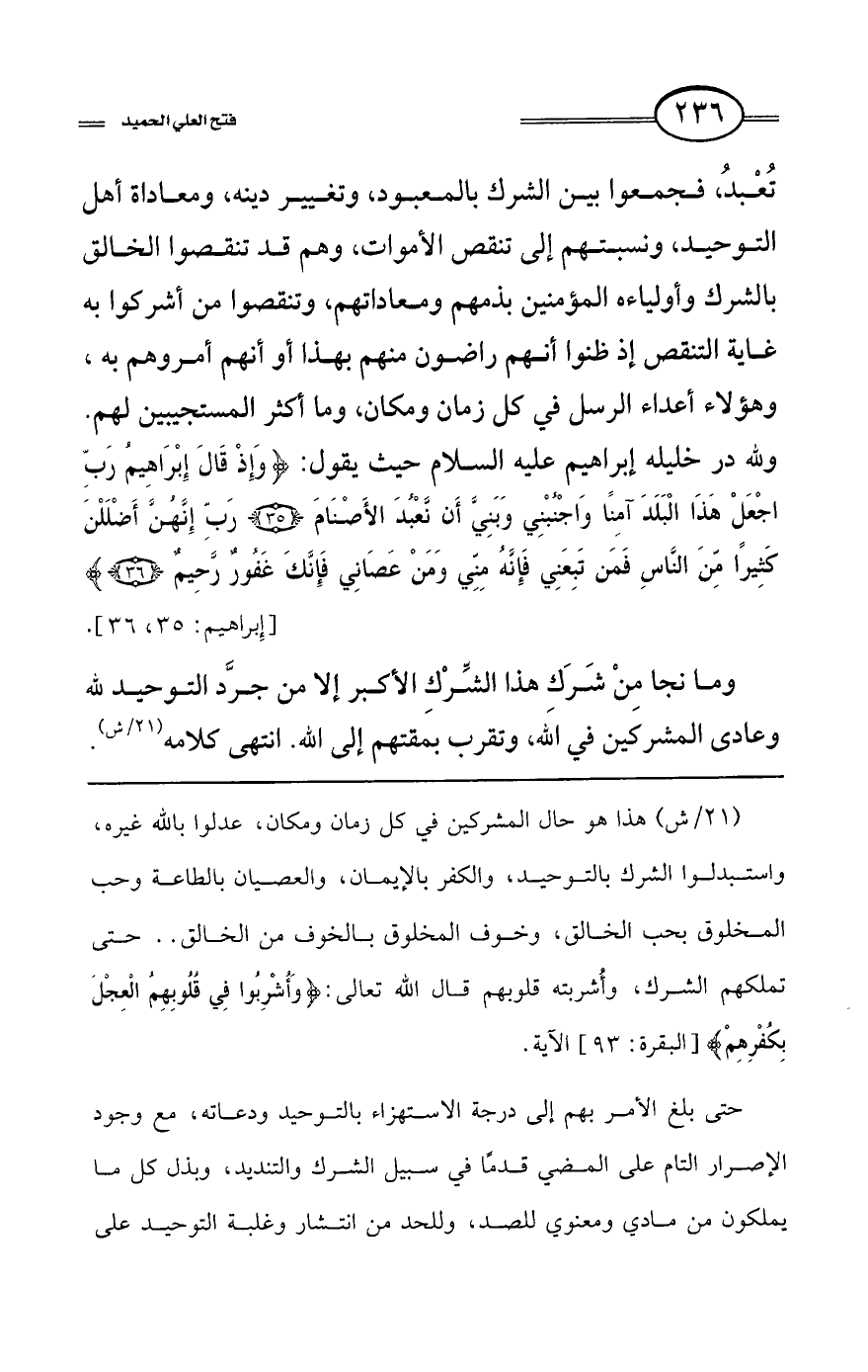 كتاب فتح العلي الحميد في شرح كتاب مفيد المستفيد في كفر تارك التوحيد