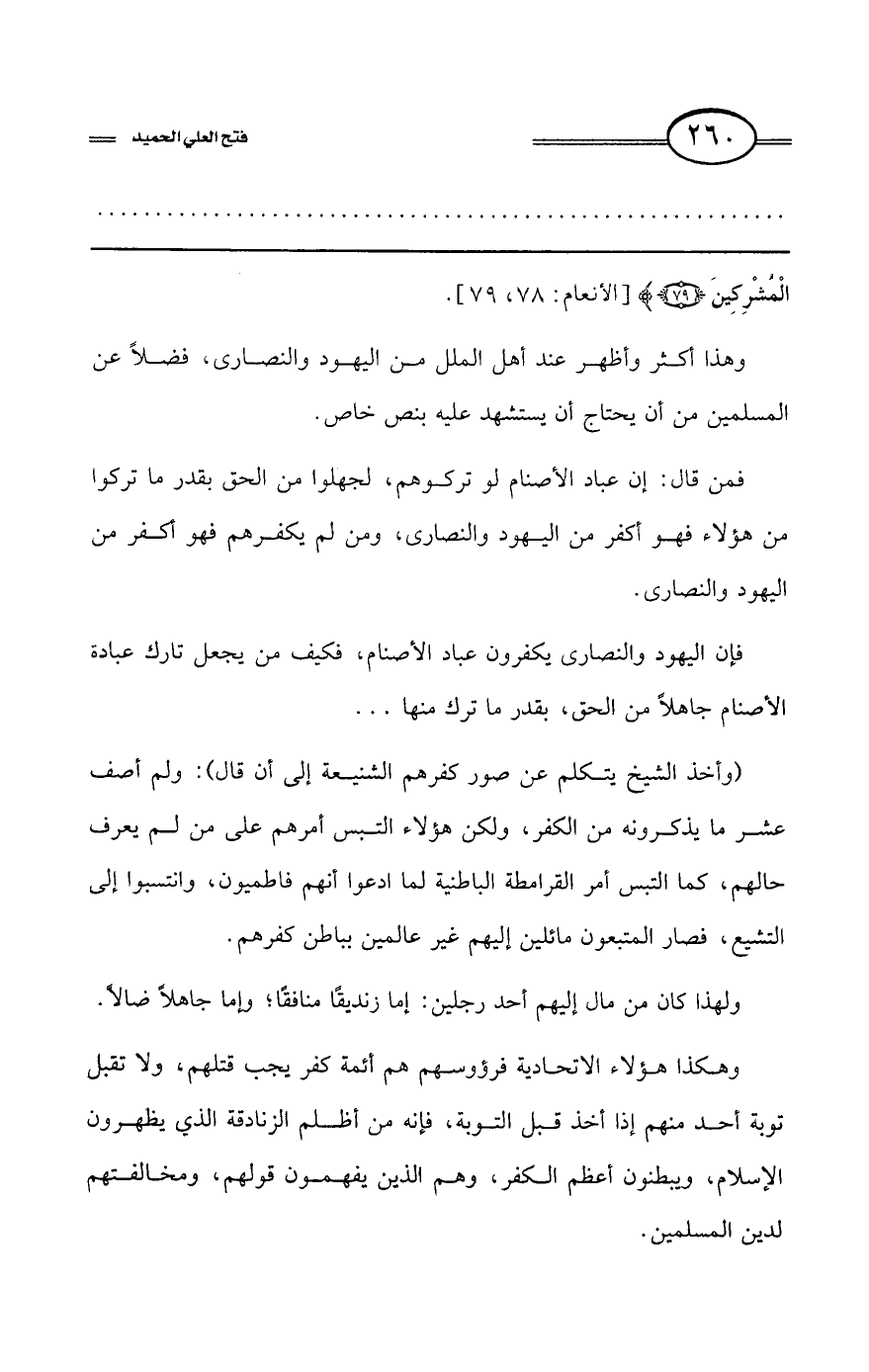 كتاب فتح العلي الحميد في شرح كتاب مفيد المستفيد في كفر تارك التوحيد