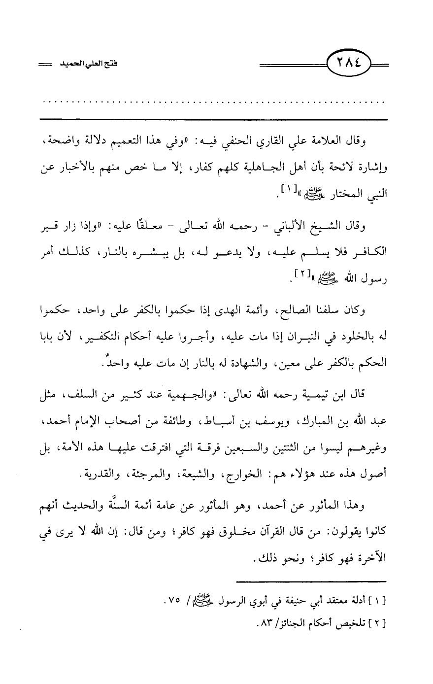 (¬1) أدلة معتقد أبي حنيفة في أبوي الرسول - صلى الله عليه وسلم - /75.