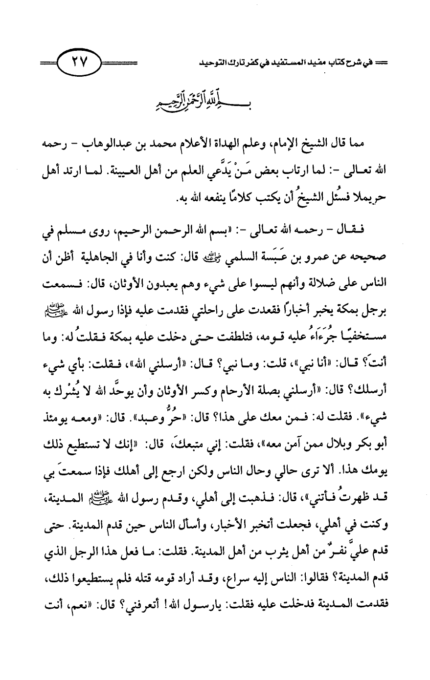 كتاب فتح العلي الحميد في شرح كتاب مفيد المستفيد في كفر تارك التوحيد