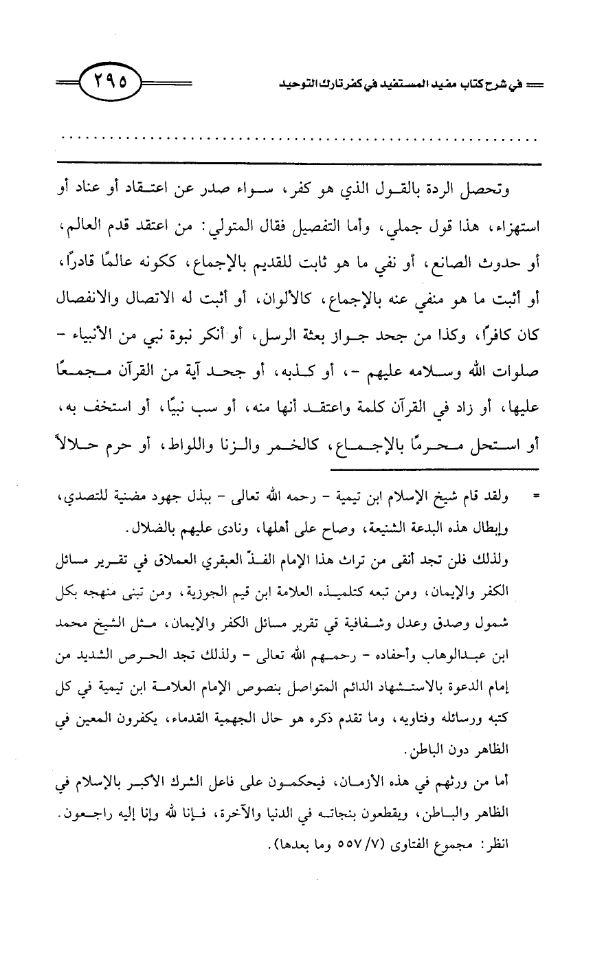 كتاب فتح العلي الحميد في شرح كتاب مفيد المستفيد في كفر تارك التوحيد