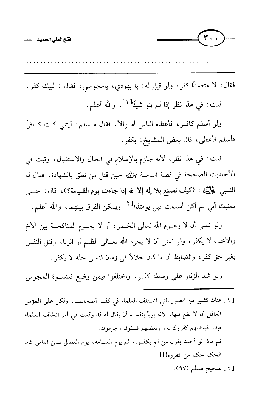 كتاب فتح العلي الحميد في شرح كتاب مفيد المستفيد في كفر تارك التوحيد