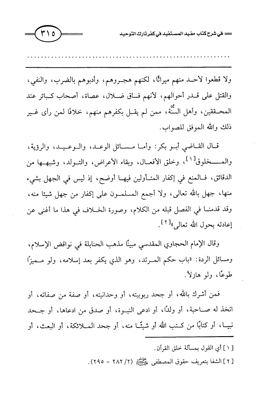 كتاب فتح العلي الحميد في شرح كتاب مفيد المستفيد في كفر تارك التوحيد