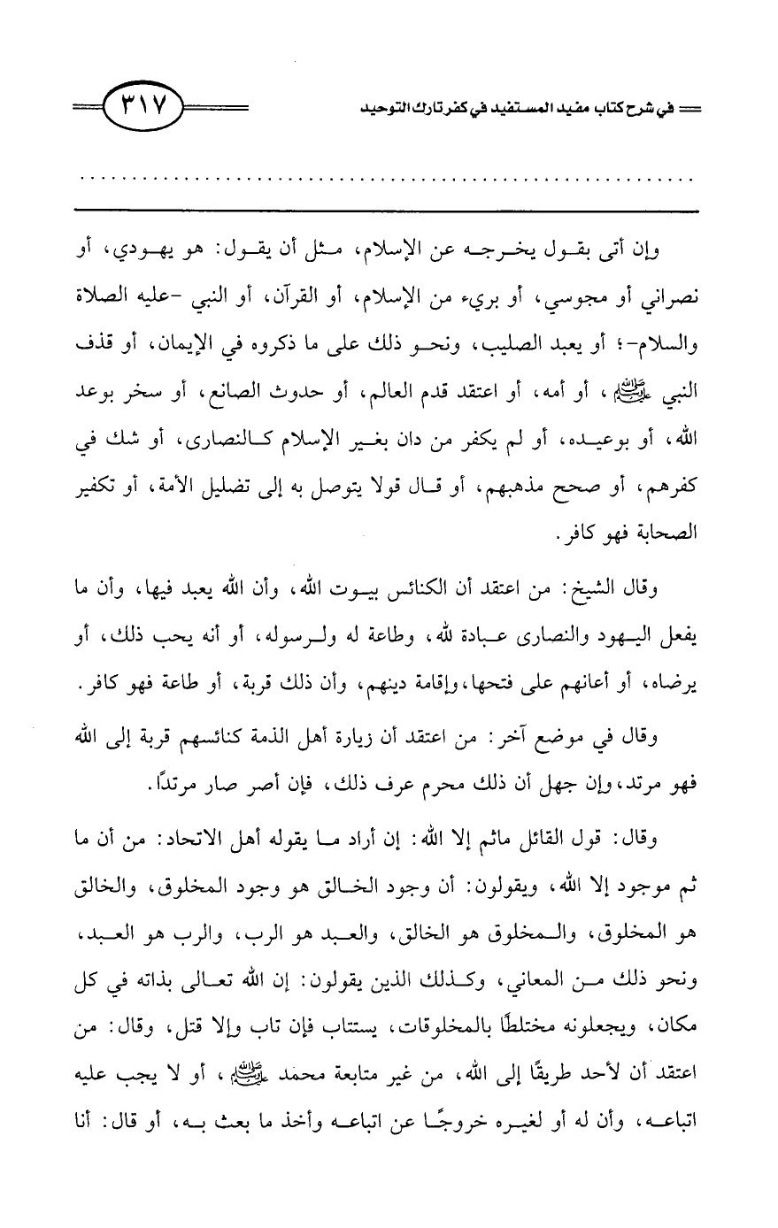 كتاب فتح العلي الحميد في شرح كتاب مفيد المستفيد في كفر تارك التوحيد