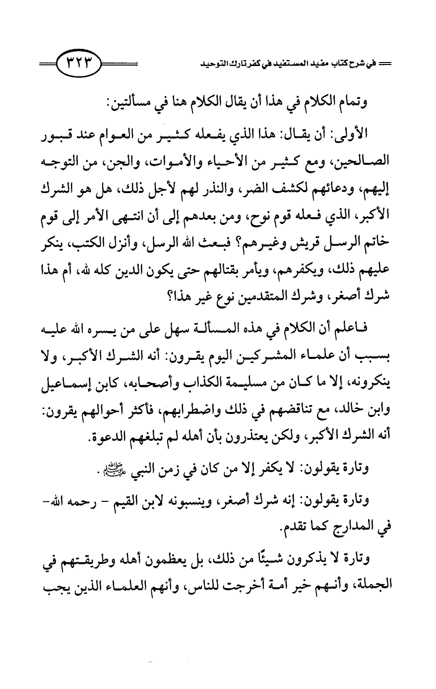 كتاب فتح العلي الحميد في شرح كتاب مفيد المستفيد في كفر تارك التوحيد