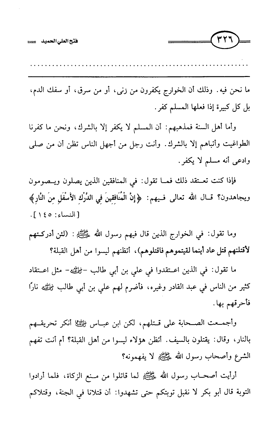 كتاب فتح العلي الحميد في شرح كتاب مفيد المستفيد في كفر تارك التوحيد