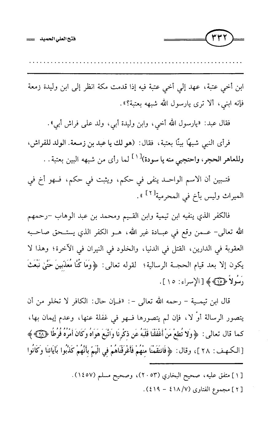 كتاب فتح العلي الحميد في شرح كتاب مفيد المستفيد في كفر تارك التوحيد