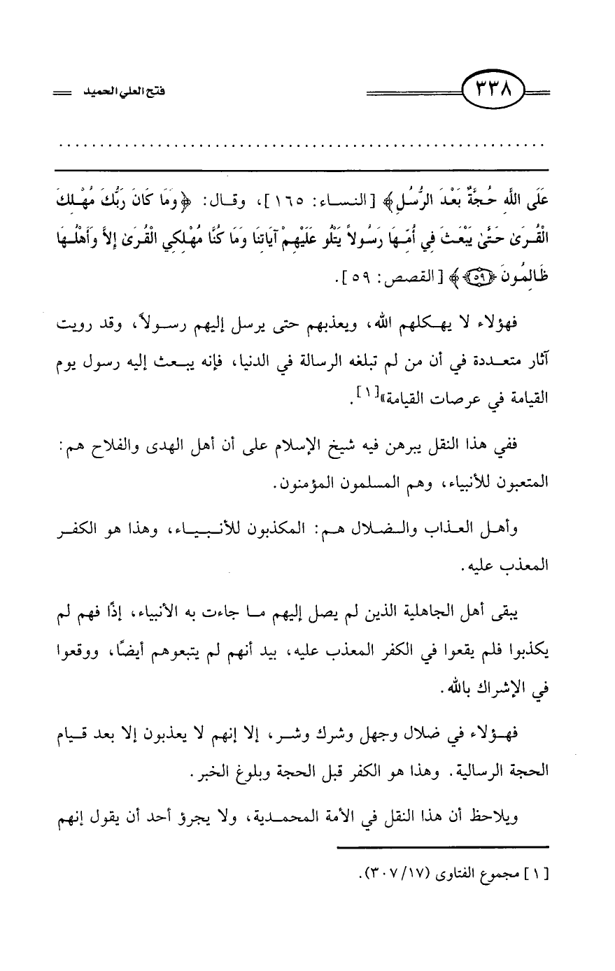 كتاب فتح العلي الحميد في شرح كتاب مفيد المستفيد في كفر تارك التوحيد