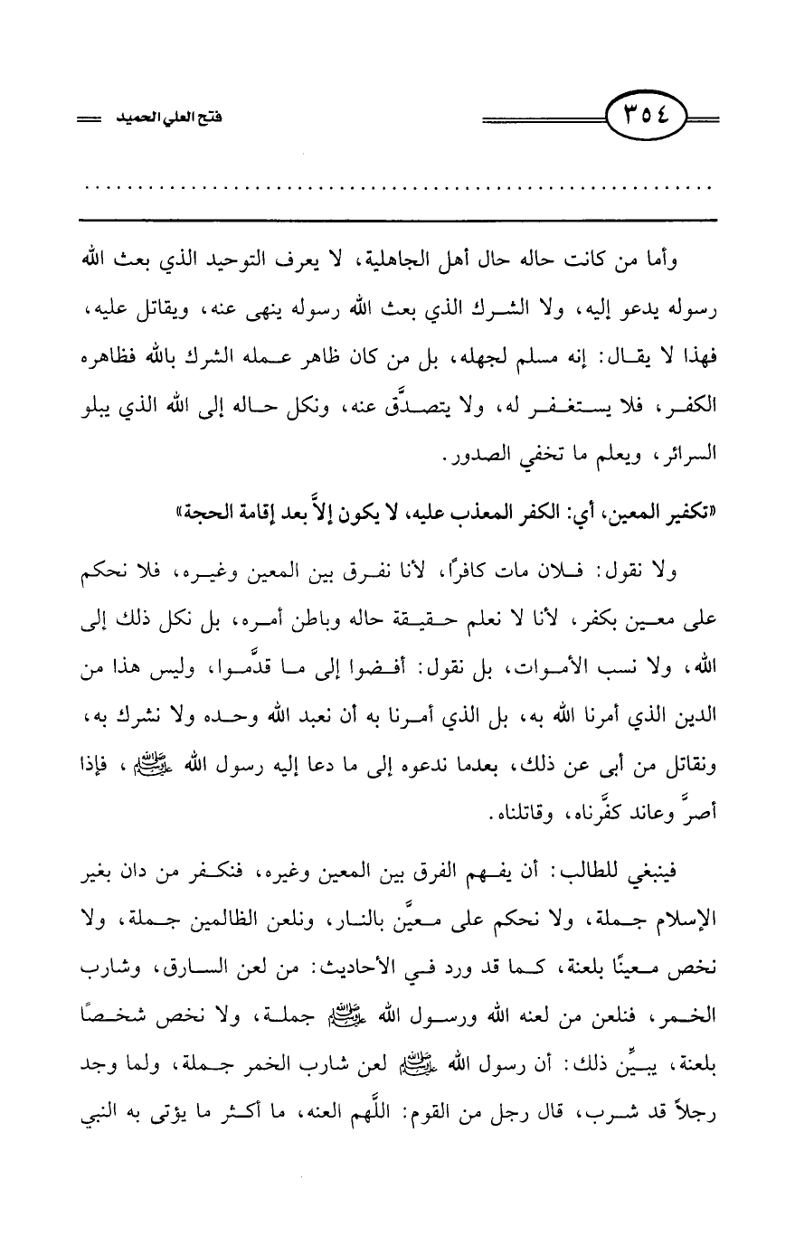 كتاب فتح العلي الحميد في شرح كتاب مفيد المستفيد في كفر تارك التوحيد