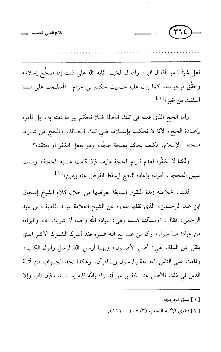 كتاب فتح العلي الحميد في شرح كتاب مفيد المستفيد في كفر تارك التوحيد