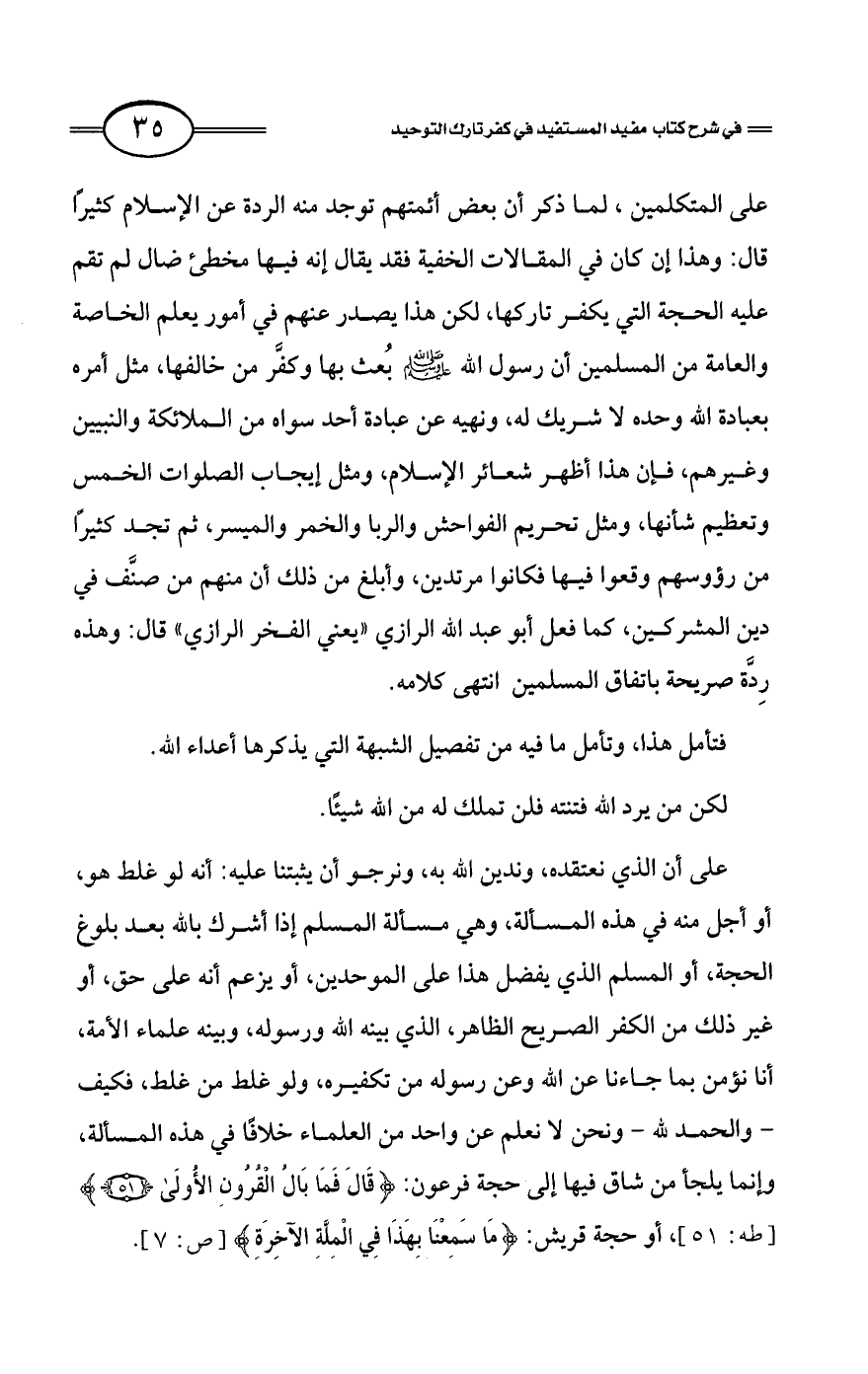 كتاب فتح العلي الحميد في شرح كتاب مفيد المستفيد في كفر تارك التوحيد