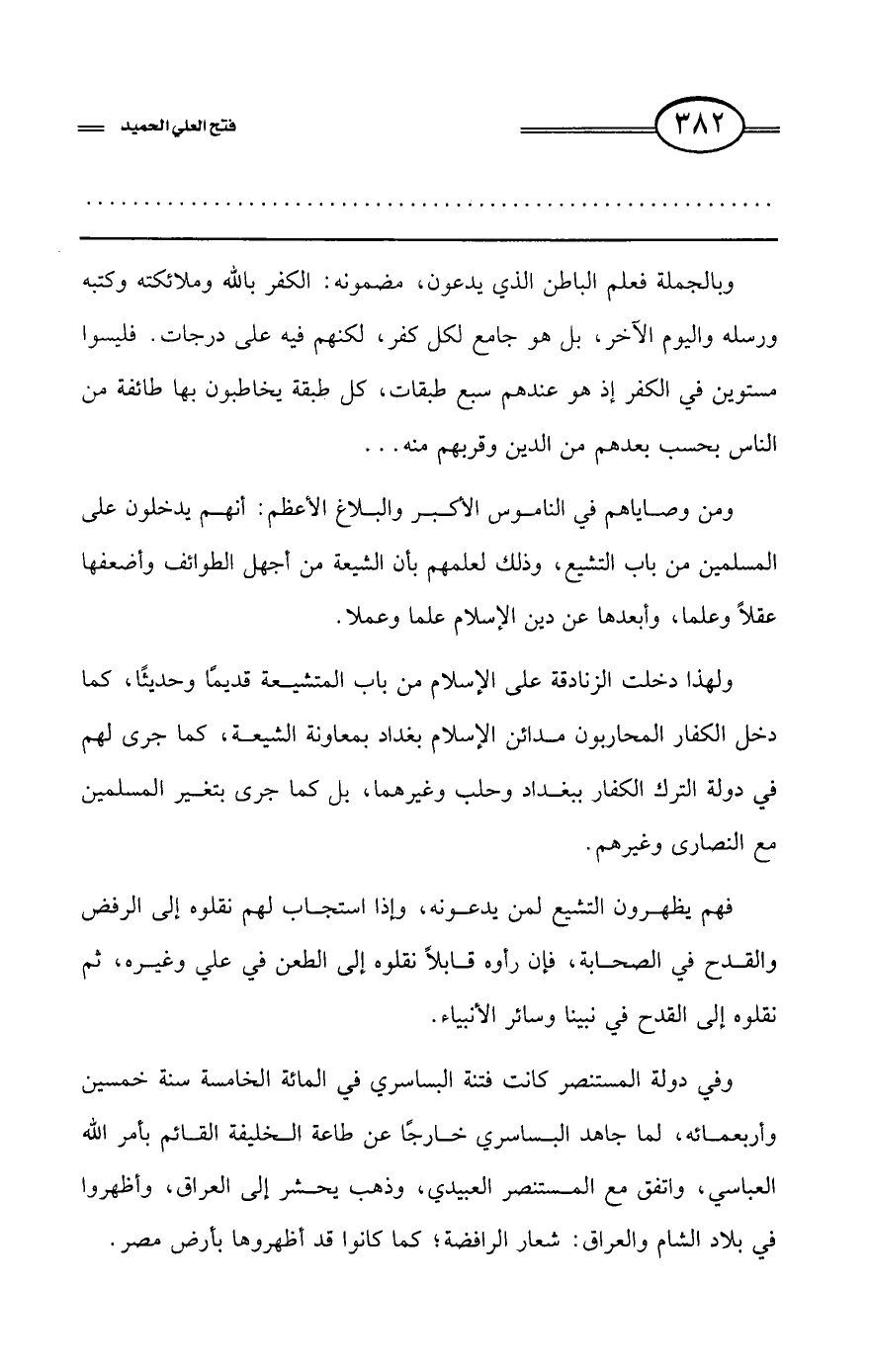 كتاب فتح العلي الحميد في شرح كتاب مفيد المستفيد في كفر تارك التوحيد
