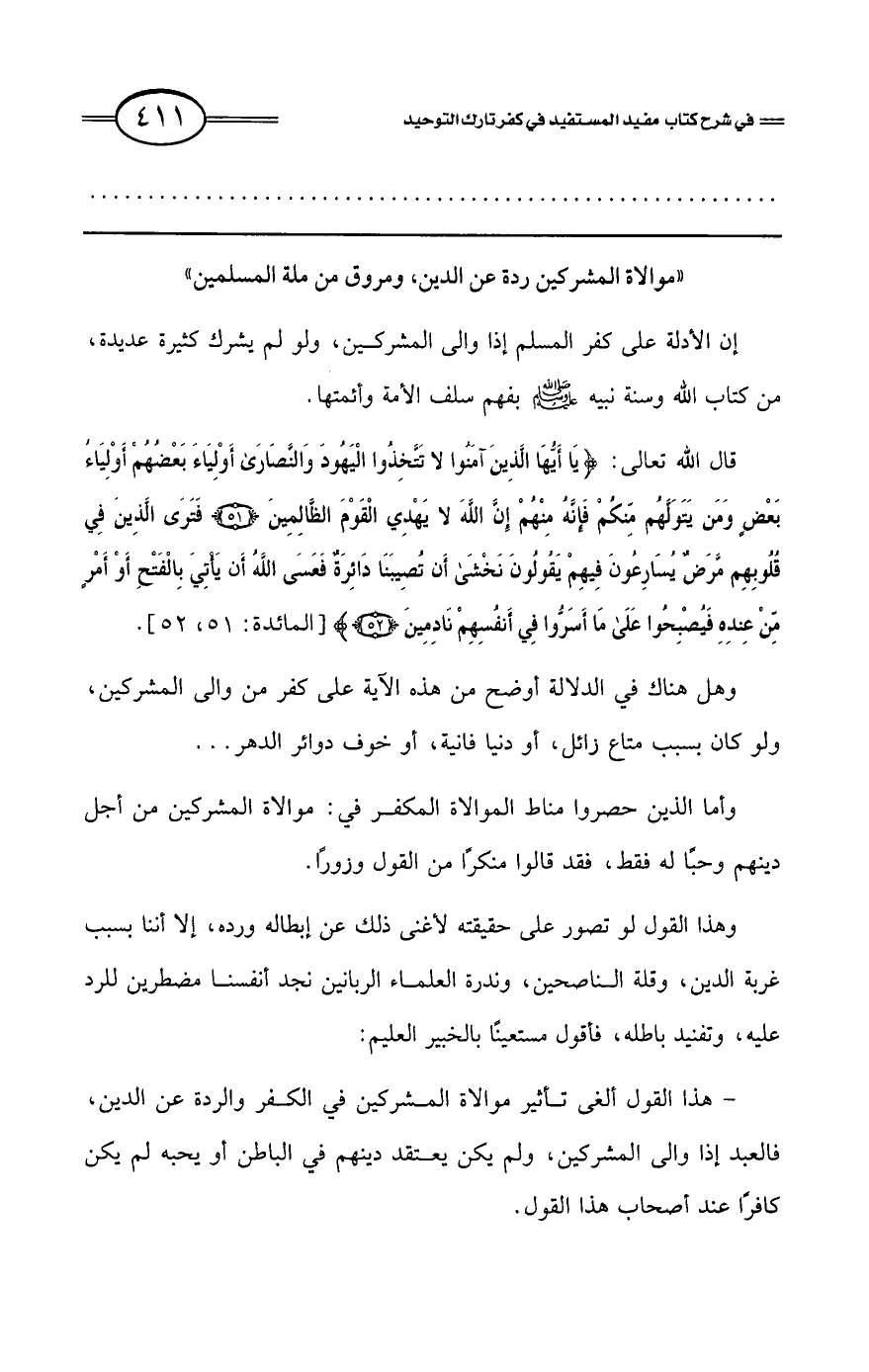 «موالاة المشركين ردة عن الدين، ومروق من ملة المسلمين»