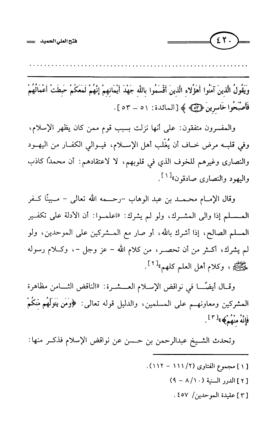 كتاب فتح العلي الحميد في شرح كتاب مفيد المستفيد في كفر تارك التوحيد