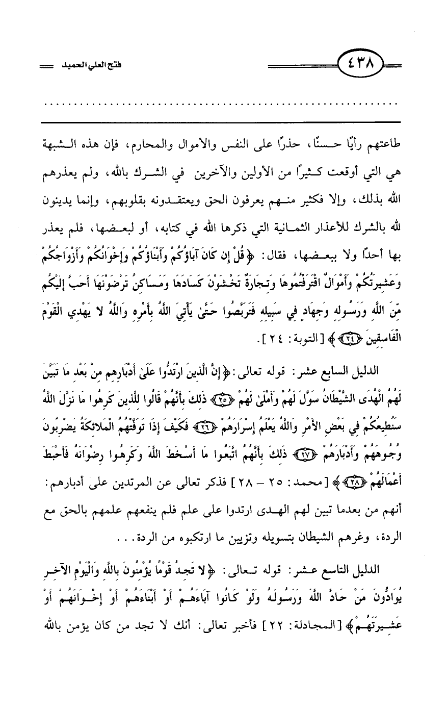 كتاب فتح العلي الحميد في شرح كتاب مفيد المستفيد في كفر تارك التوحيد