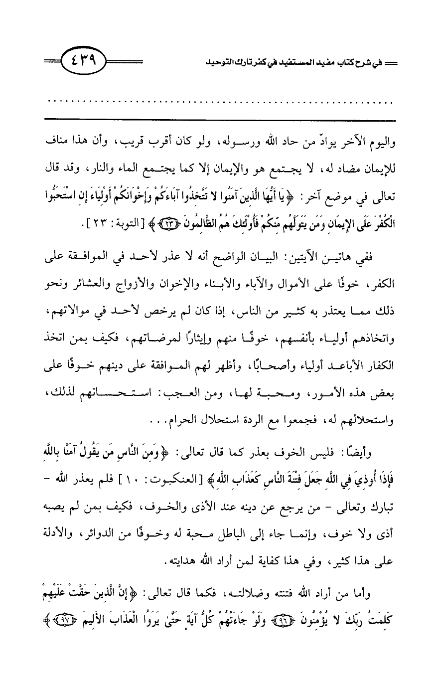 كتاب فتح العلي الحميد في شرح كتاب مفيد المستفيد في كفر تارك التوحيد