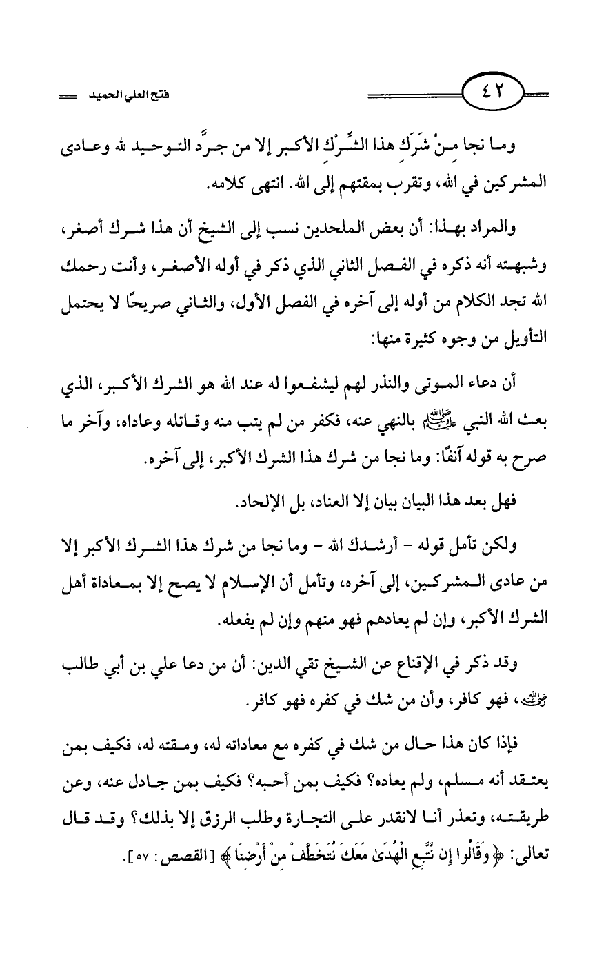كتاب فتح العلي الحميد في شرح كتاب مفيد المستفيد في كفر تارك التوحيد