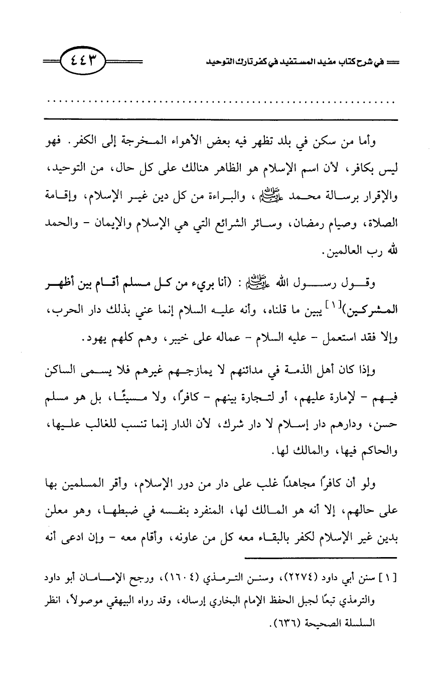 كتاب فتح العلي الحميد في شرح كتاب مفيد المستفيد في كفر تارك التوحيد