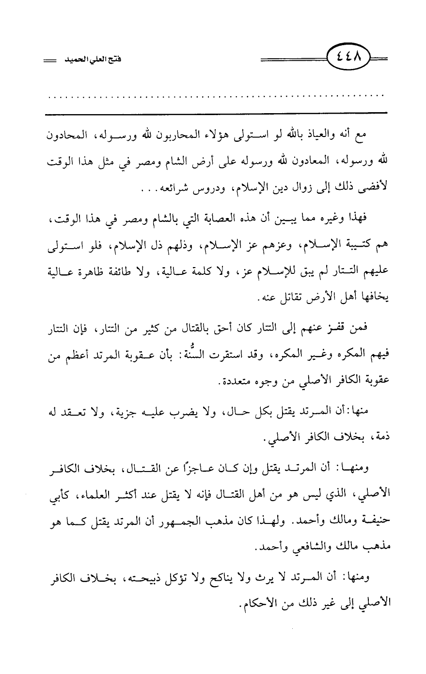 كتاب فتح العلي الحميد في شرح كتاب مفيد المستفيد في كفر تارك التوحيد