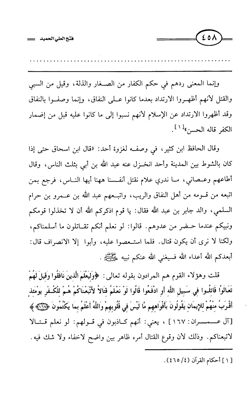 كتاب فتح العلي الحميد في شرح كتاب مفيد المستفيد في كفر تارك التوحيد