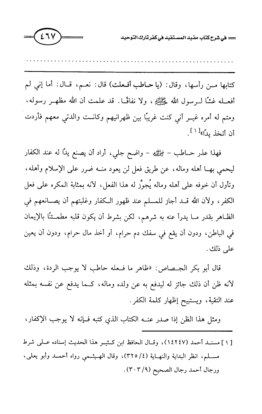 كتاب فتح العلي الحميد في شرح كتاب مفيد المستفيد في كفر تارك التوحيد