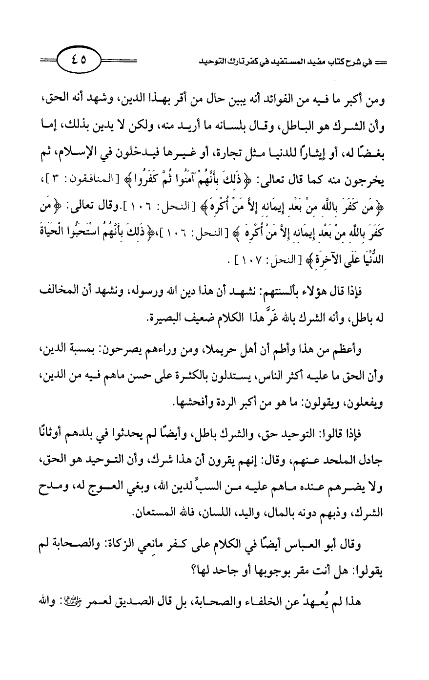 كتاب فتح العلي الحميد في شرح كتاب مفيد المستفيد في كفر تارك التوحيد