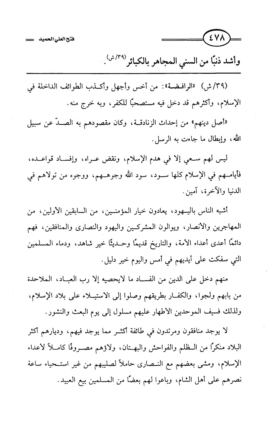 (39/ش) «الرافضة»: من أخس وأجهل وأكذب الطوائف الداخلة في الإسلام، وأكثرهم قد دخل فيه مستصحبًا للكفر، وبه خرج منه.