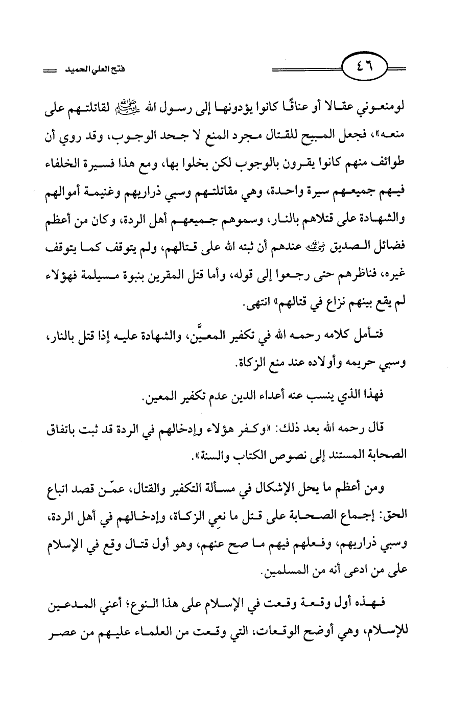 كتاب فتح العلي الحميد في شرح كتاب مفيد المستفيد في كفر تارك التوحيد