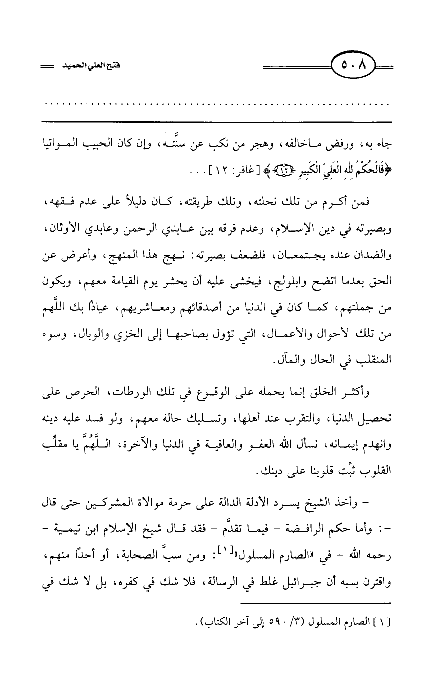 كتاب فتح العلي الحميد في شرح كتاب مفيد المستفيد في كفر تارك التوحيد