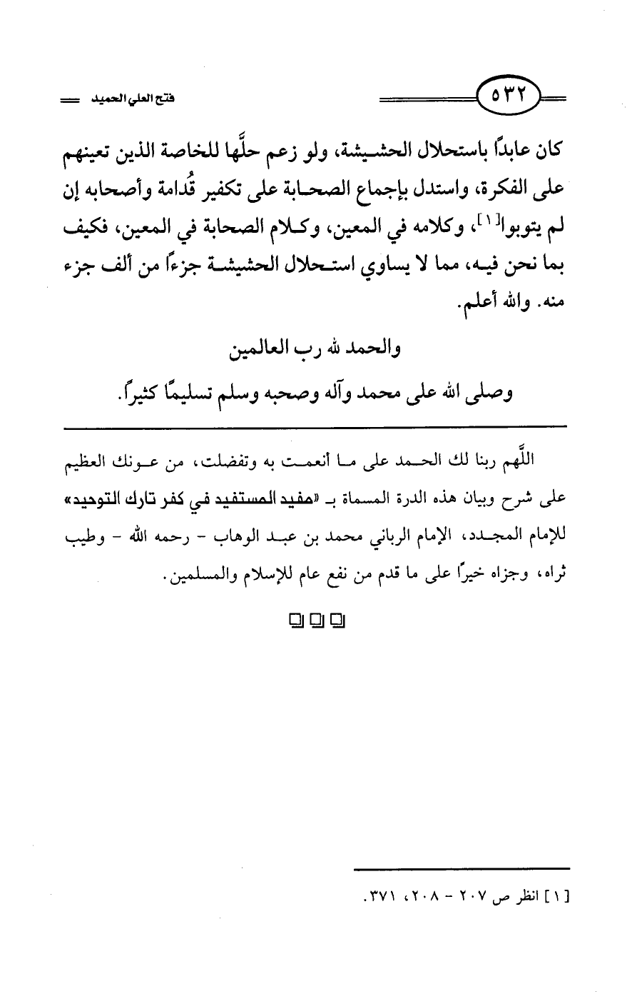 كتاب فتح العلي الحميد في شرح كتاب مفيد المستفيد في كفر تارك التوحيد