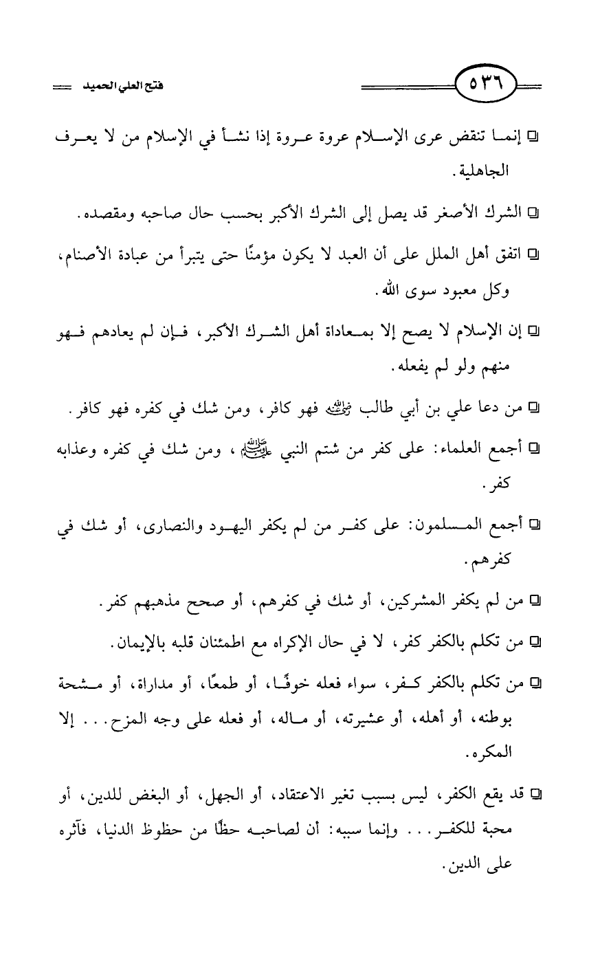 كتاب فتح العلي الحميد في شرح كتاب مفيد المستفيد في كفر تارك التوحيد