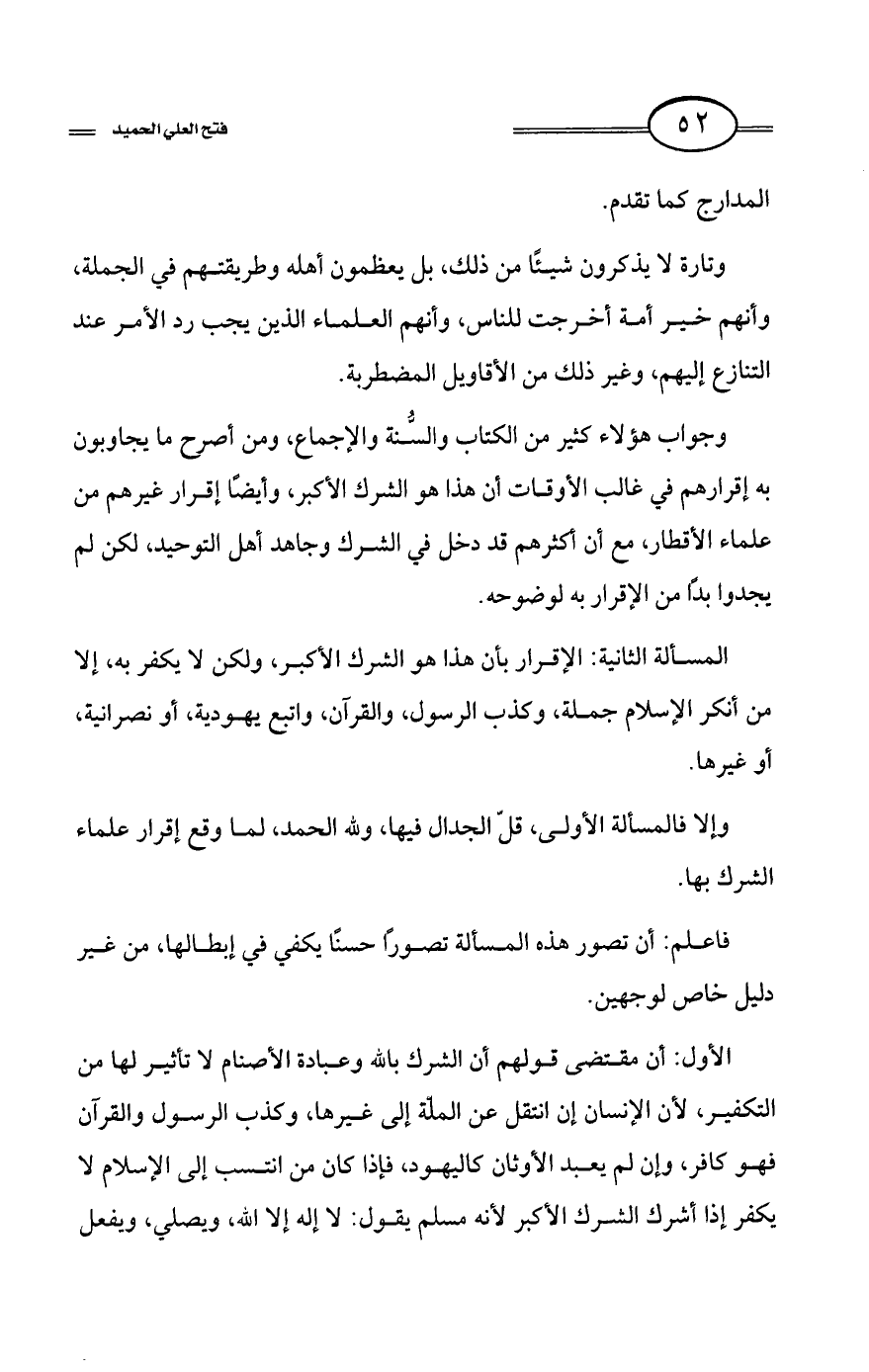 كتاب فتح العلي الحميد في شرح كتاب مفيد المستفيد في كفر تارك التوحيد