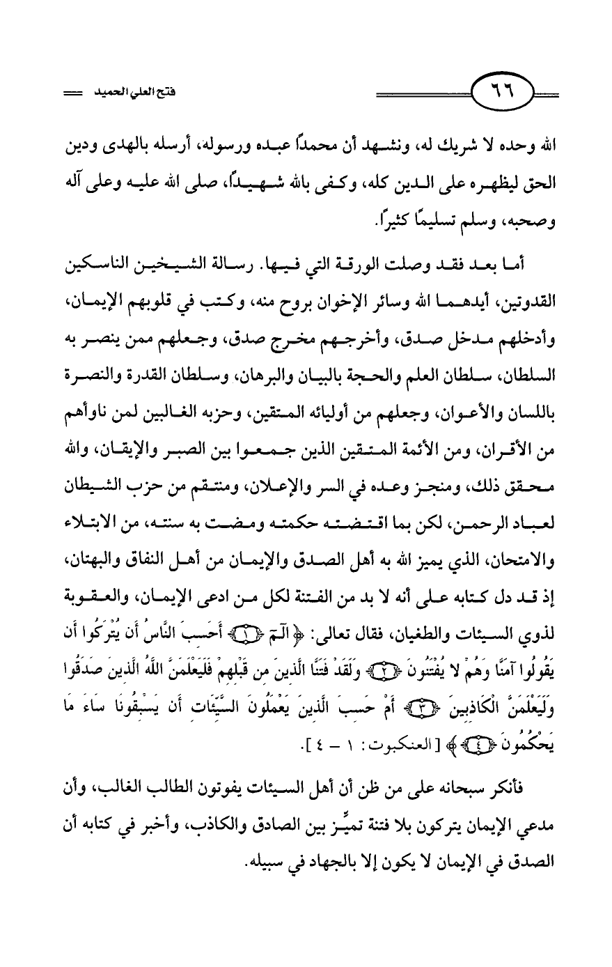كتاب فتح العلي الحميد في شرح كتاب مفيد المستفيد في كفر تارك التوحيد