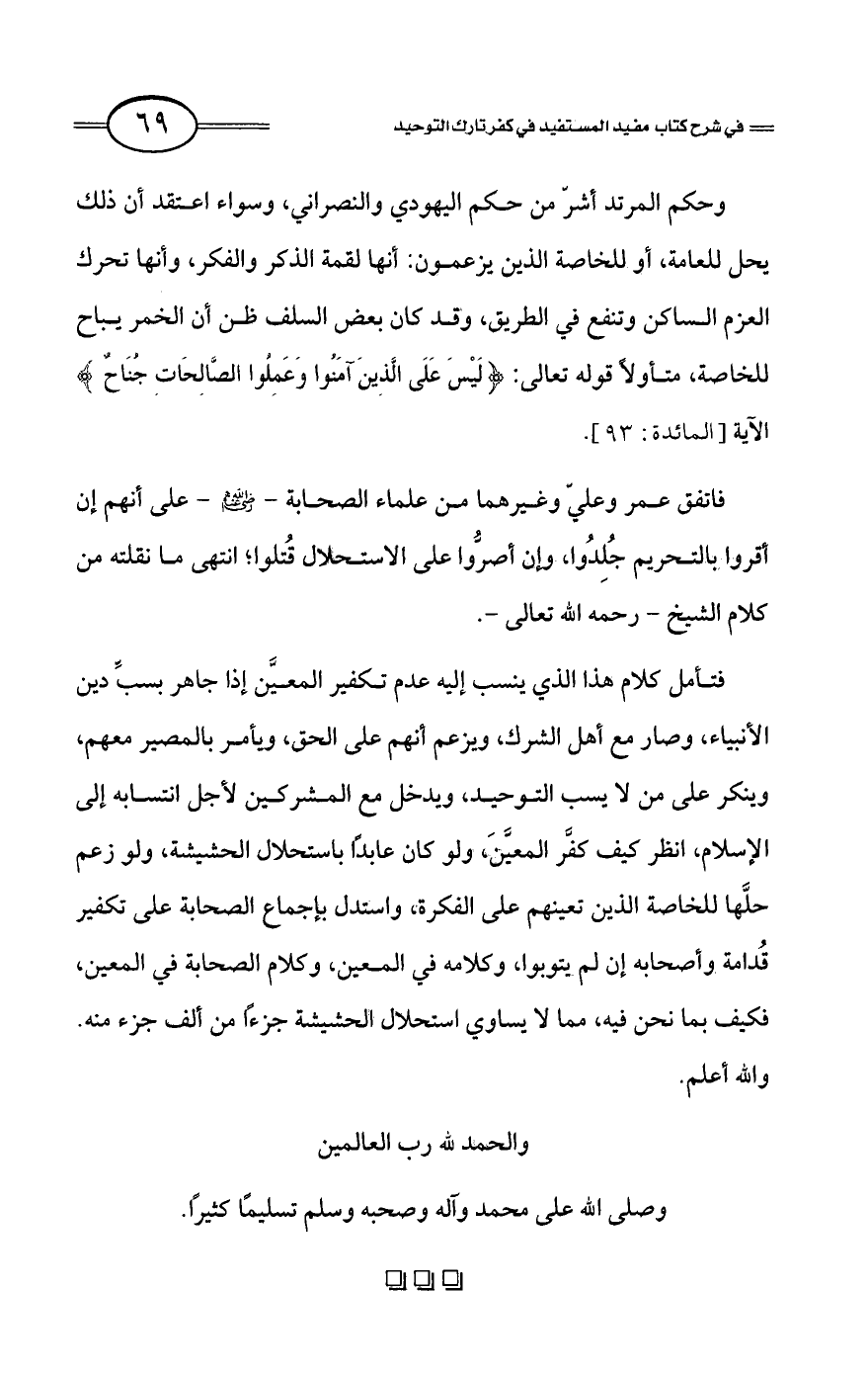 كتاب فتح العلي الحميد في شرح كتاب مفيد المستفيد في كفر تارك التوحيد