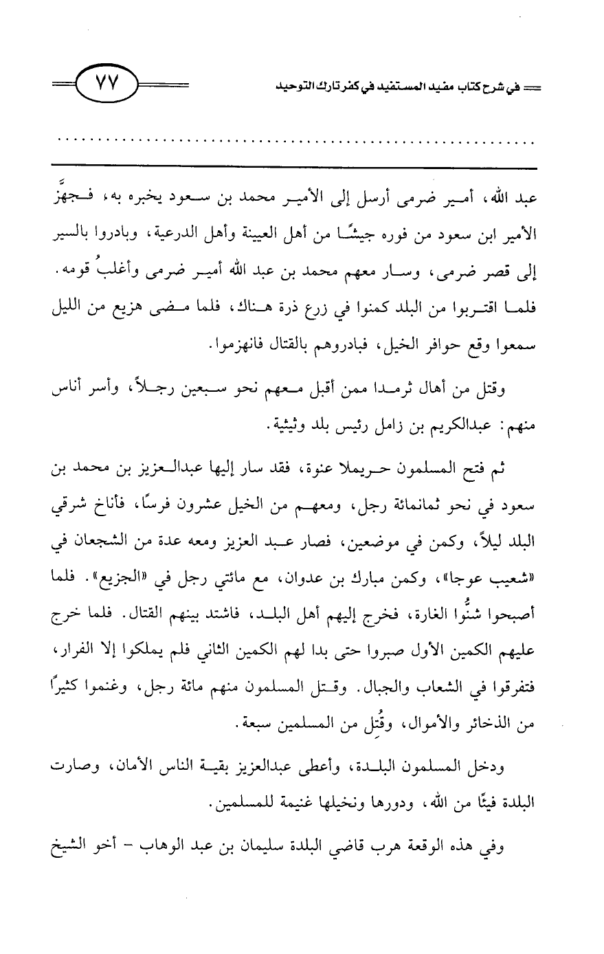 وفي هذه الوقعة هرب قاضي البلدة سليمان بن عبد الوهاب - أخو الشيخ