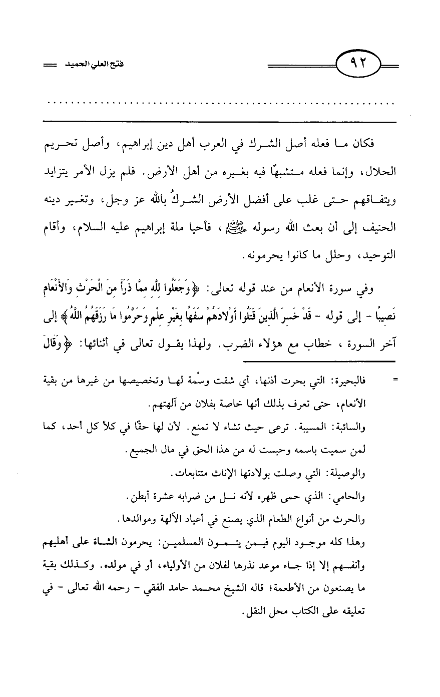 كتاب فتح العلي الحميد في شرح كتاب مفيد المستفيد في كفر تارك التوحيد