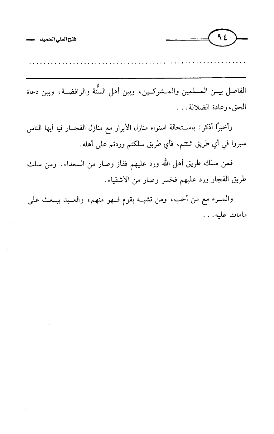 الفاصل بين المسلمين والمشركين، وبين أهل السُّنة والرافضة، وبين دعاة الحق، ودعاة الضلالة ...