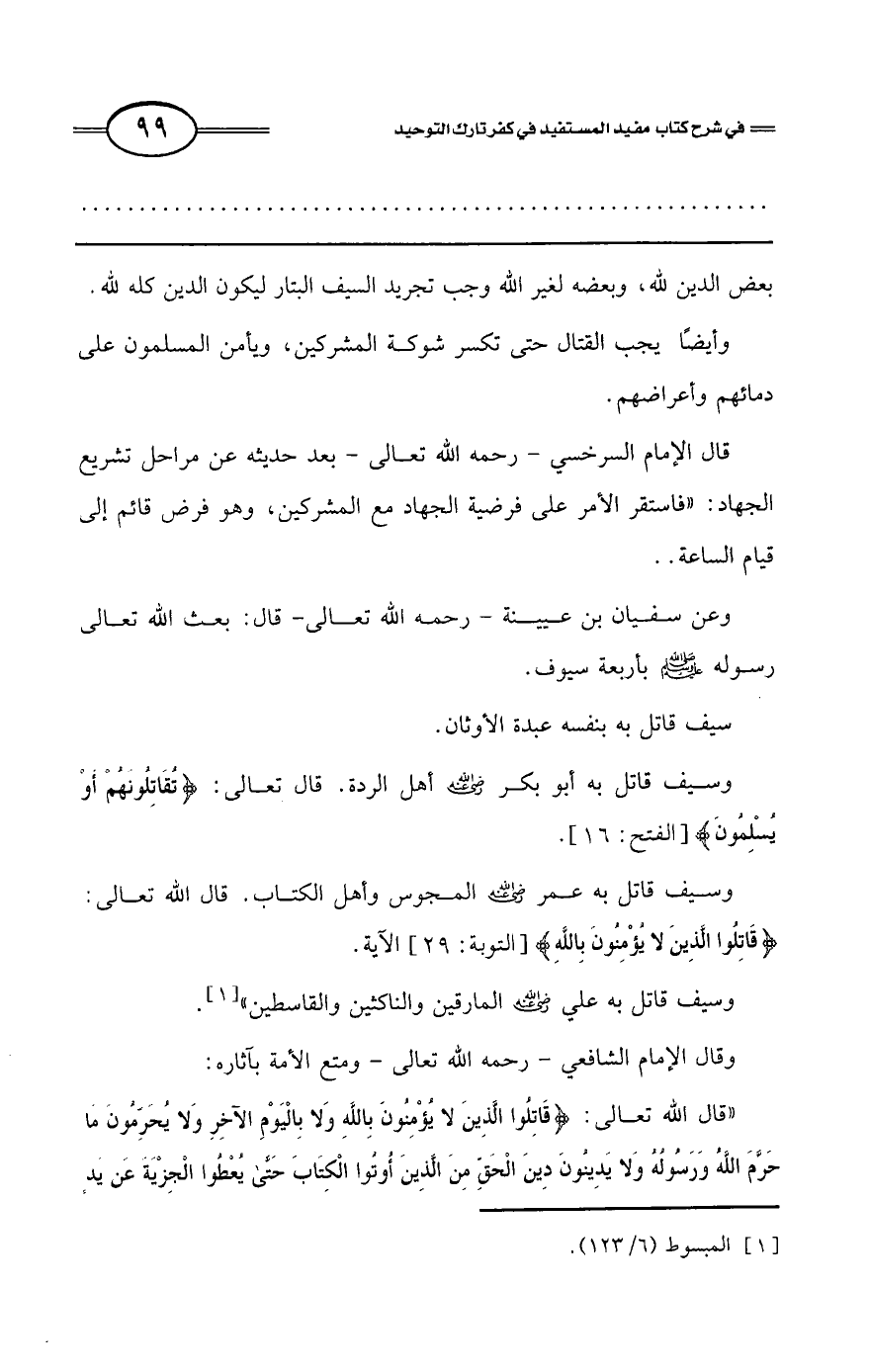 بعض الدين لله، وبعضه لغير الله وجب تجريد السيف البتار ليكون الدين كله لله.