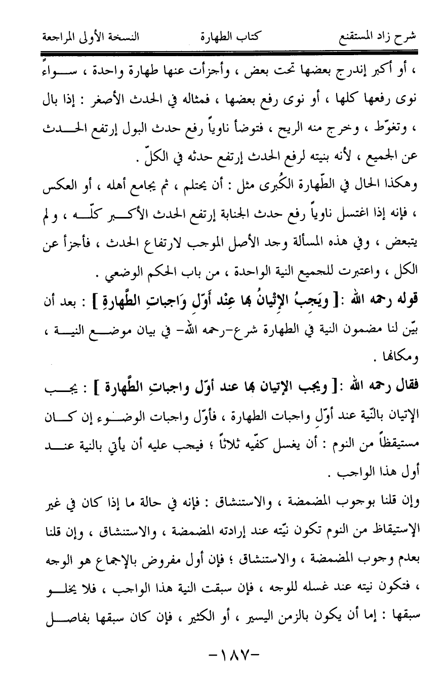 قوله رحمه الله: [ويَجِبُ الإِتْيانُ بها عِنْد أَوّلِ وَاجباتِ الطهارةِ]: بعد أن بيّن لنا مضمون النية في الطهارة شرع -رحمه الله- في بيان موضع النية، ومكانها.