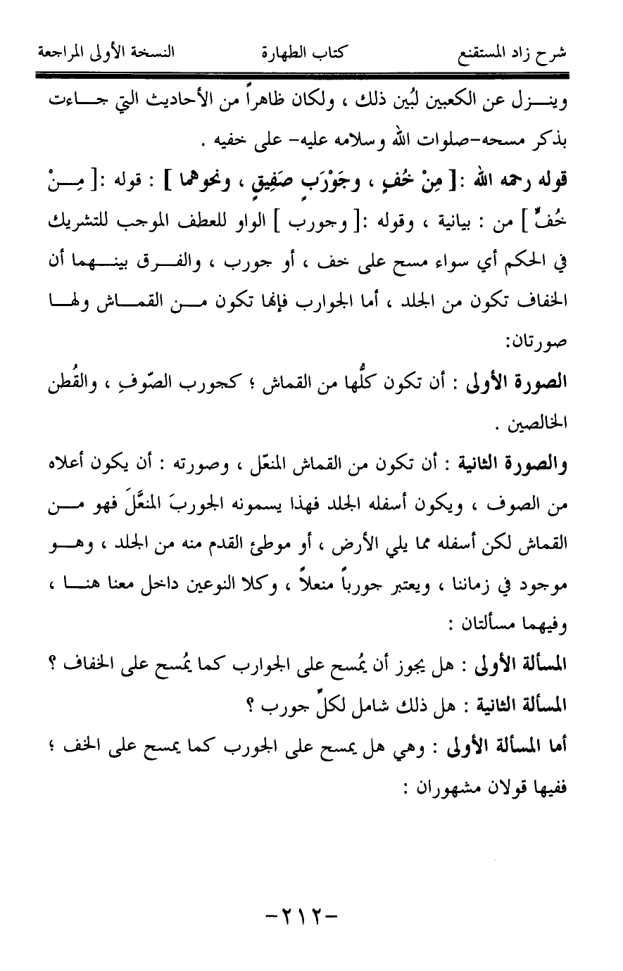 المسألة الأولى: هل يجوز أن يمُسح على الجوارب كما يمُسح على الخفاف؟