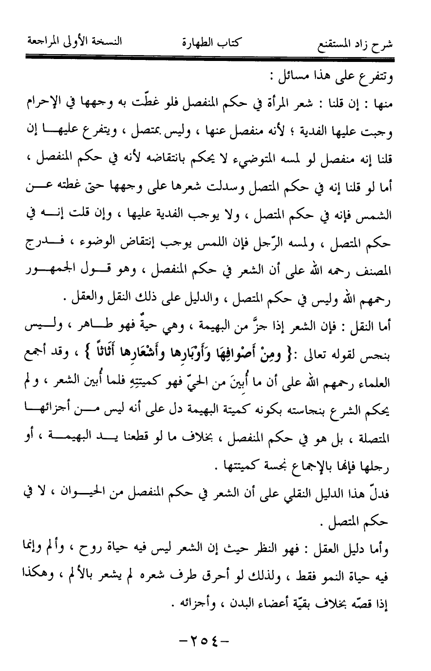 فدلّ هذا الدليل النقلى على أن الشعر في حكم المنفصل من الحيوان، لا في حكم المتصل.
