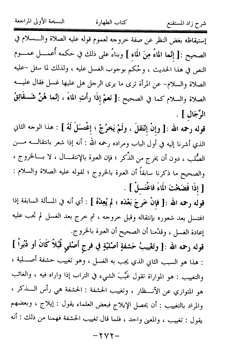 قوله رحمه الله: [وإِنْ إِنتَقلَ، ولَمْ يَخرُجْ؛ إِغْتسَلَ لَهُ]: هذا الوجه الثاني الذي أشرنا إليه في أول الباب ومراده رحمه الله: أنه إذا شعر بانتقاله من الصُّلب، دون أن يخرج من الذَّكر؛ فإن العبرة بالإنتقال، لا بالخروج، والصحيح ما ذكرنا سابقاً أن العبرة بالخروج؛ لقوله عليه الصلاة والسلام: [إِذَا فَضَخْتَ المَاءَ فاغْتَسِلْ].