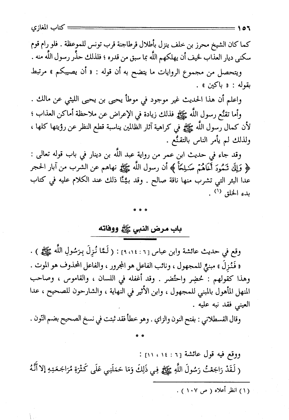 وقد جاء في حديث ابن عمر من رواية عبد الله بن دينار في باب قوله تعالى: {وَإِلَى ثَمُودَ أَخَاهُمْ صَالِحًا} [الأعراف: 73] أن رسول الله - صلى الله عليه وسلم - نهاهم عن الشرب من آبار الحجر عدا البئر التي تشرب منها ناقة صالح. وقد بينا ذلك عند الكلام عليه في كتاب بدء الخلق.