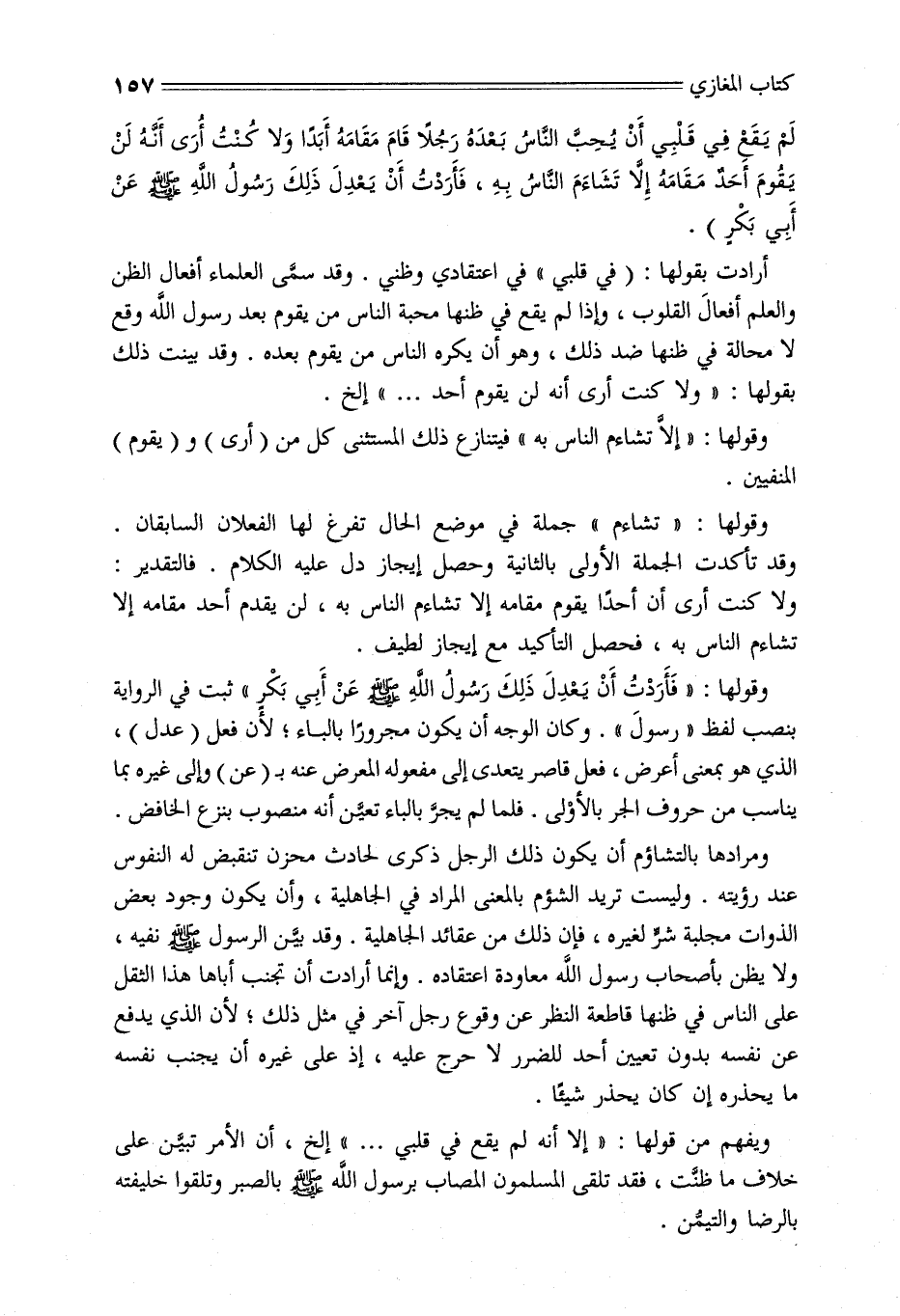 ويفهم من قولها: «إلا أنه لم يقع في قلبي .... » إلخ، أن الأمر تبين على خلاف ما ظنت، فقد تلقى المسلمون المصاب برسول الله - صلى الله عليه وسلم - بالصبر وتلقوا خليفته بالرضا والتيمن.