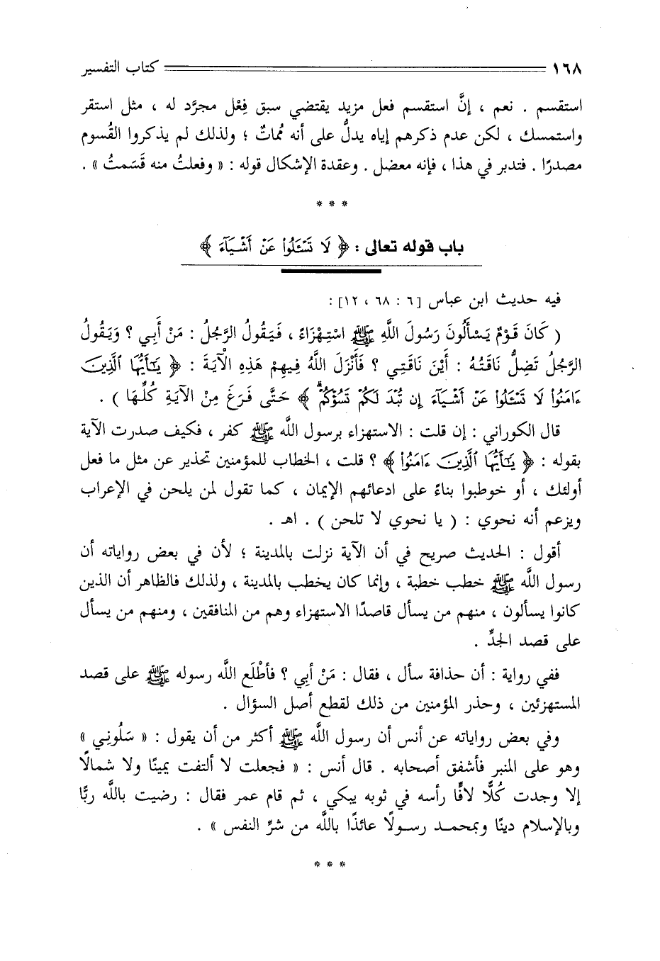 باب قوله تعالى: {لَا تَسْأَلُوا عَنْ أَشْيَاءَ} [المائدة: 101]