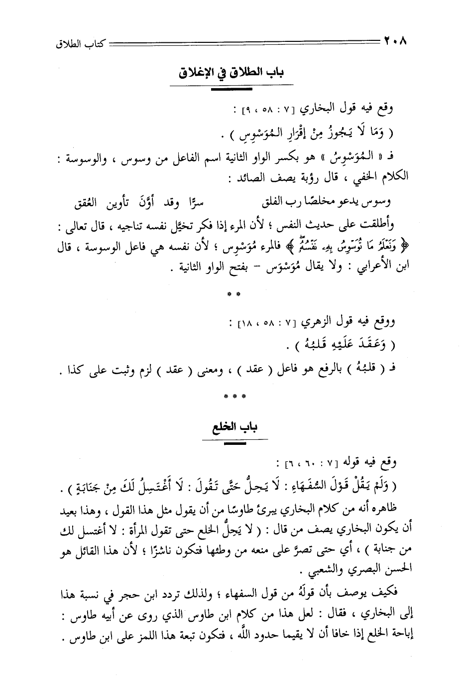 فكيف يوصف بأن قولَهُ من قول السفهاء؛ ولذلك تردد ابن حجر في نسبة هذا إلى البخاري، فقال: لعل هذا من كلام ابن طاوس الذي روى عن أبيه طاوس: إباحة الخلع إذا خافا أن لا يقيما حدود الله، فتكون تبعة هذا اللمز على ابن طاوس.