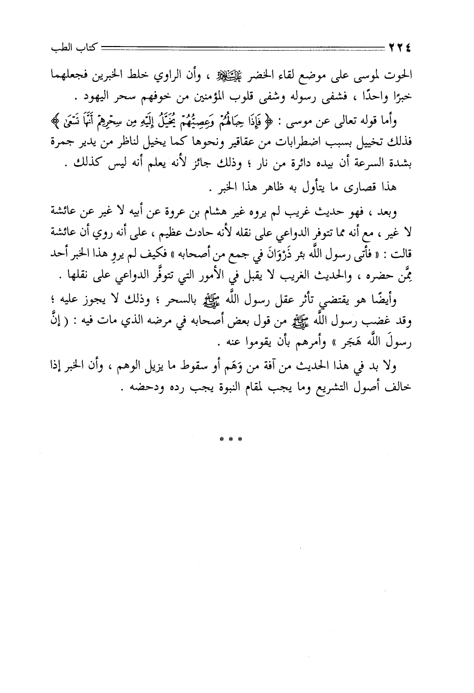 وبعد، فهو حديث غريب لم يروه غير هشام بن عروة عن أبيه لا غير عن عائشة لا غير، مع أنه مما توفر الدواعي على نقله لأنه حادث عظيم، على أنه روي أن عائشة قالت: «فأتى رسول الله بئر ذَرْوَانَ في جمع من أصحابه» فكيف لم يروِ هذا الخبر أحد مِمَّن حضره، والحديث الغريب لا يقبل في الأمور التي تتوفَّر الدواعي على نقلها.